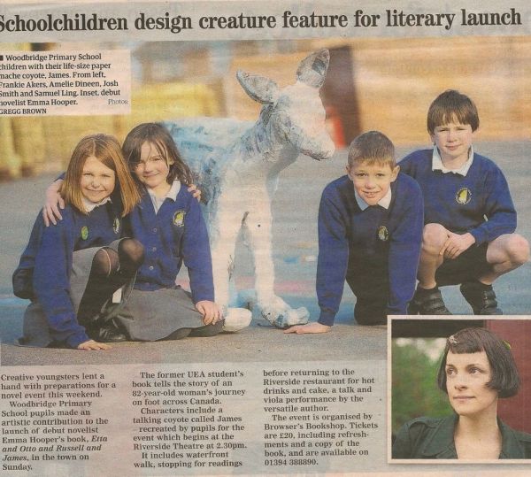 Pupils from Woodbridge Primary School have created a lifesize coyote out of paper to mark the visit of debut novelist Emma Hooper to the town this week.