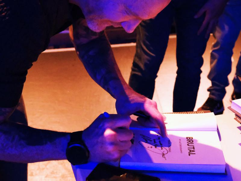 Tickets were £20 and included a signed copy of ‘Brutal’ (RRP £20). One further ticket could be purchased for £12 (without the book)