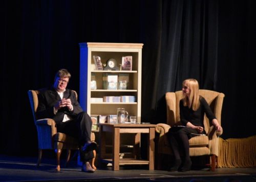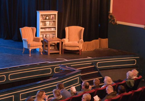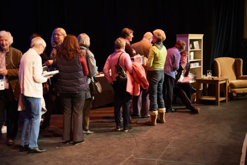 The stage at the Riverside Cinema is a big space to fill for an author and his interviewer, so I approached our lovely independent department store, Barretts and asked if they would lend me some furniture. They were only too pleased to help and I had my pick of the shop floor selecting two armchairs, a bookcase and coffee table for my attempt at reproducing the home of Sidney Chambers.
