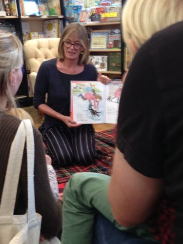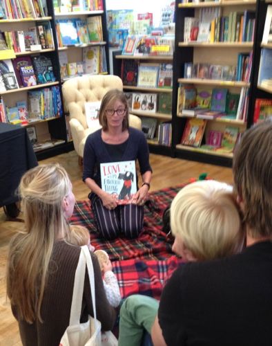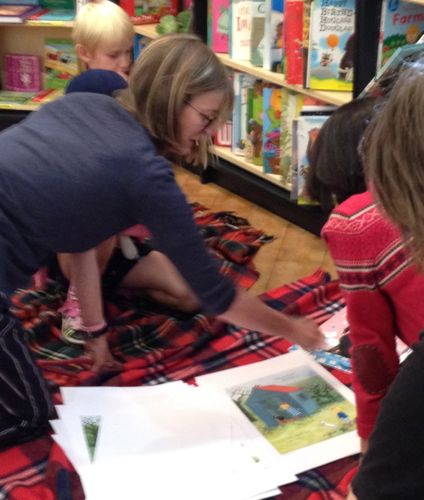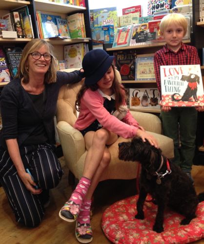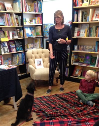 At 4pm the children, the parents, and a number of adults gathered around the rug on the floor to hear Emma talk about her plans for the next book about Plum which will be published in the spring. Then Emma read from the new book. It was the first time that Plum had heard it read out loud and she got very confused as Emma said she was 'a bad dog', when she was behaving beautifully.