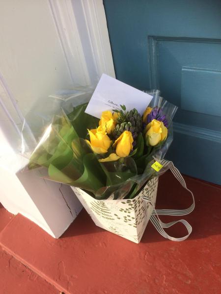 And when I got home, there was a bunch of flowers on my doorstep from a friend who had come to the evening's event. The flowers were beautiful and she had written a note describing how she had enjoyed the evening: