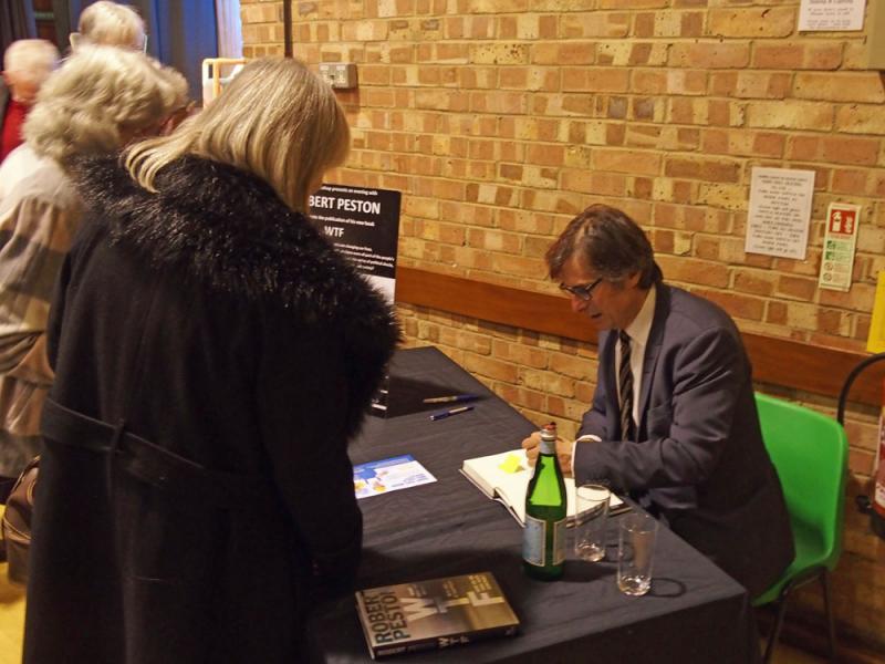 After a very appreciative applause we both left the stage, and moved to the signing table where a long queue had already formed. Robert, here, was just as impressive. He gave warm and attentive responses to each person, was prepared to have photos taken, and listened carefully to any comments people wished to make while knowing when and how to move them on politely.