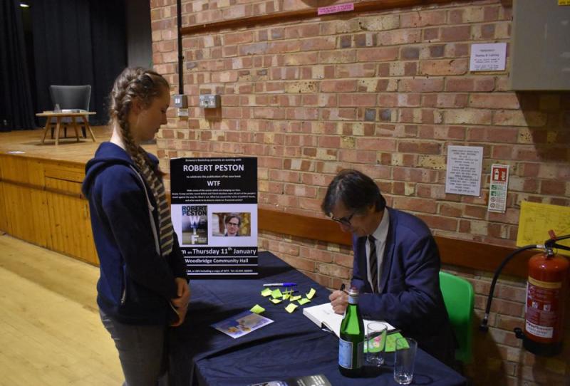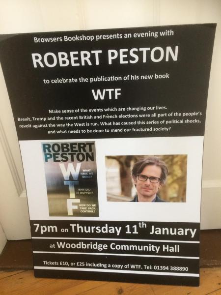 Thank you so much for organising and interviewing Robert Peston in Woodbridge last night. It’s so good to have such an opportunity in our local community, thank you. Jane