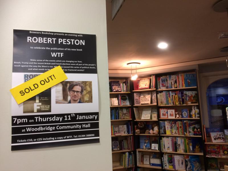 I had barely finished putting the notice in the shop window before people began pouring in to reserve their place for this event. Word spread and within a couple of weeks we had sold all the tickets for the 300-seat venue - and this, three months ahead of the date. Such was the interest in Robert Peston's visit that we could have sold this event twice over.