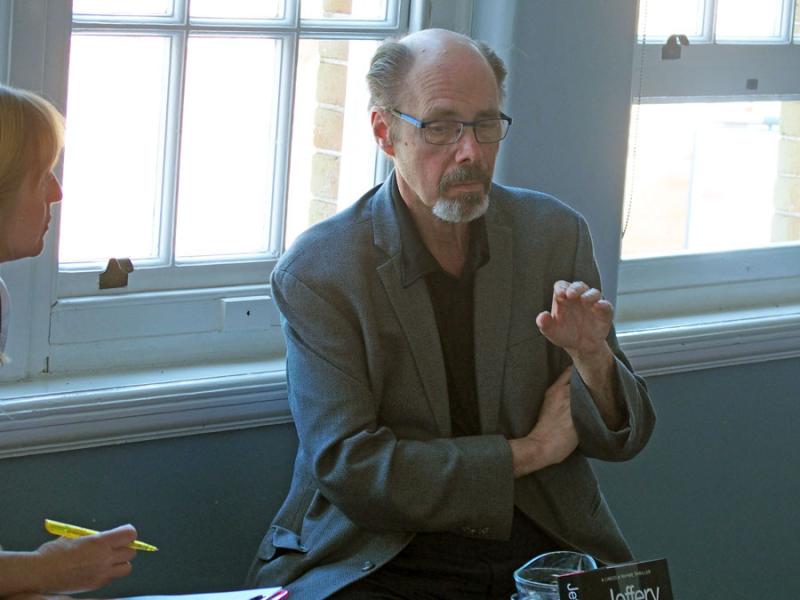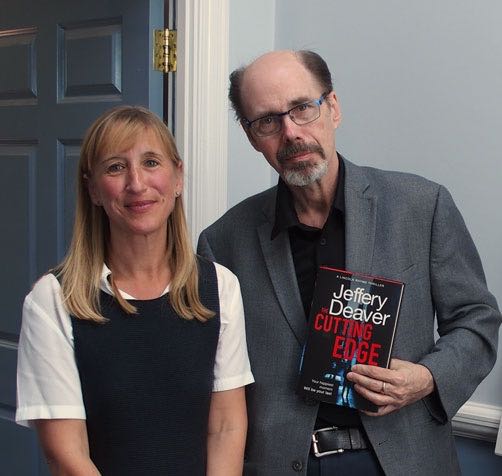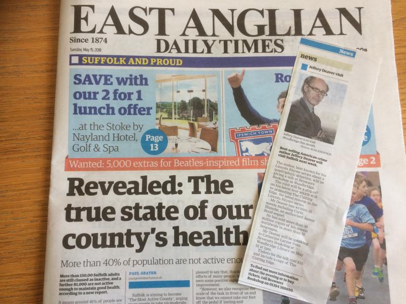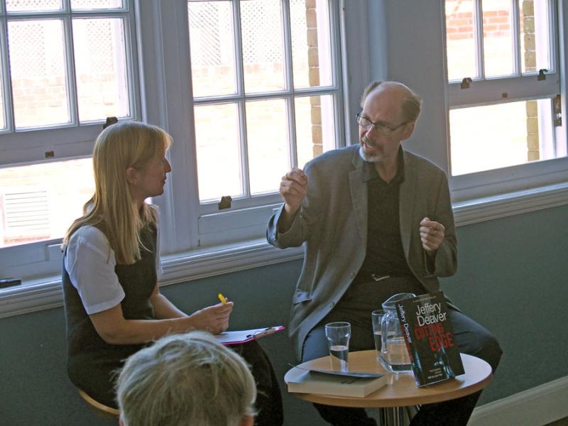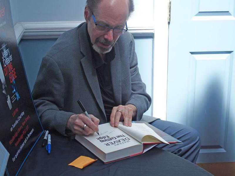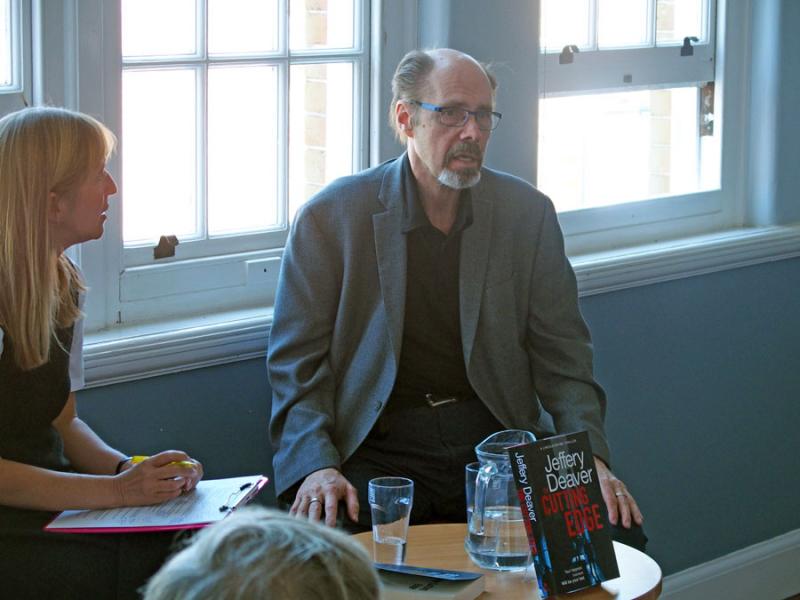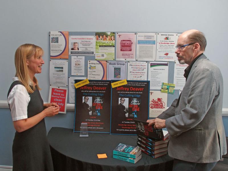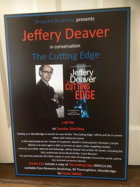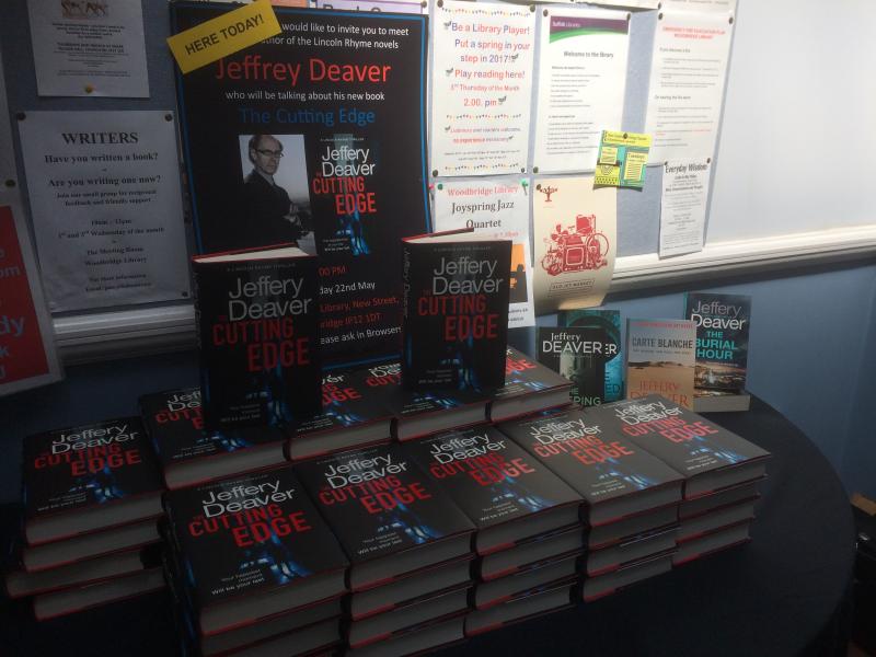 The international bestselling crime writer, Jeffery Deaver was visiting from his home in the USA to introduce his new Lincoln Rhyme thriller 'The Cutting Edge' to his UK fans. In his week's tour he took in bookshops and festivals from Edinburgh to Portsmouth, and today he travelled to meet us in Woodbridge Library for a lunchtime event on a gloriously sunny day.