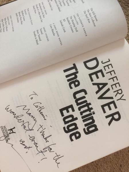 Jeffery's publicity photo was quite intimidating, but he was warm and generous and I asked him how he feels about immersing himself in the dark world of his novels. Does it affect his mood or character? He said that if you are in command of your craft, you can step back, just as a surgeon or a pilot might do. He also stated that the violence in his books is 'off camera' and, as such, his books are recommended to high school children to read in America. He said he had a rule that he didn't hurt children or animals in his stories.