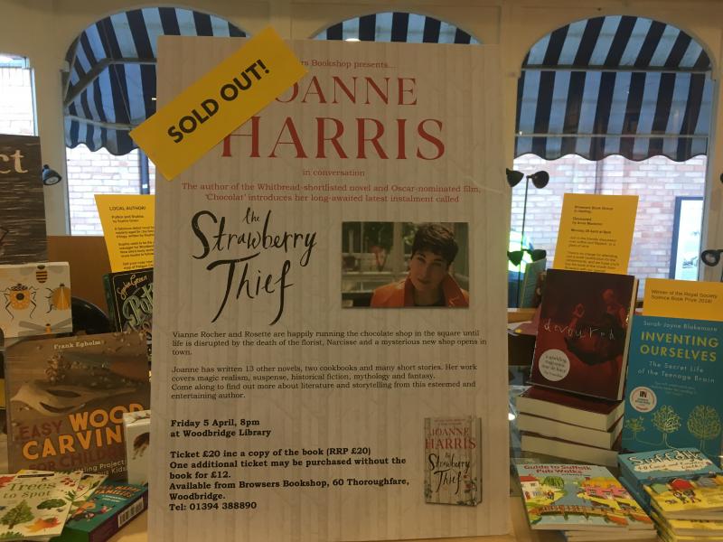 It was a capacity audience in Woodbridge Library this evening, and there was great excitement and anticipation at meeting Joanne Harris, the author of 'Chocolat', and many other novels, short stories and cookbooks.