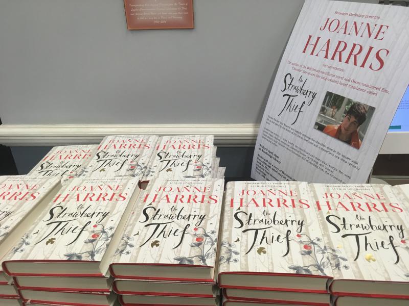 Joanne joined us the day after the official publication of her novel 'The Strawberry Thief'. This new book continues the story of Vianne Rocher, first introduced to us in 'Chocolat'. Vianne and her younger daughter Rosette are happily running the chocolate shop in the square when life is disrupted by the death of the florist, Narcisse and a mysterious new shop opens in town.